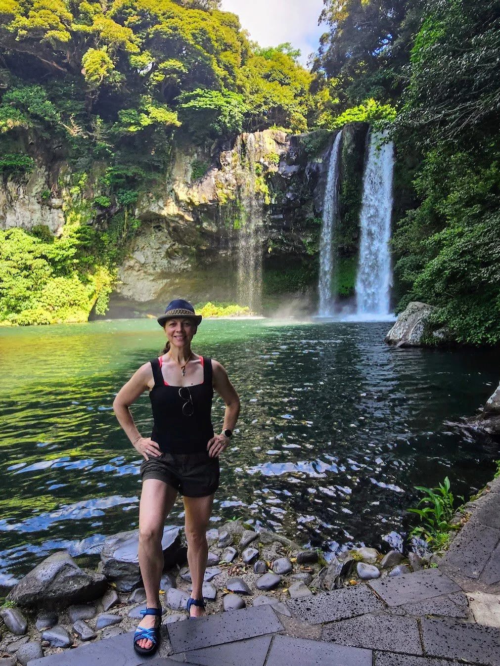 Me in front of Cheonjiyeon Falls, Seogwipo.
